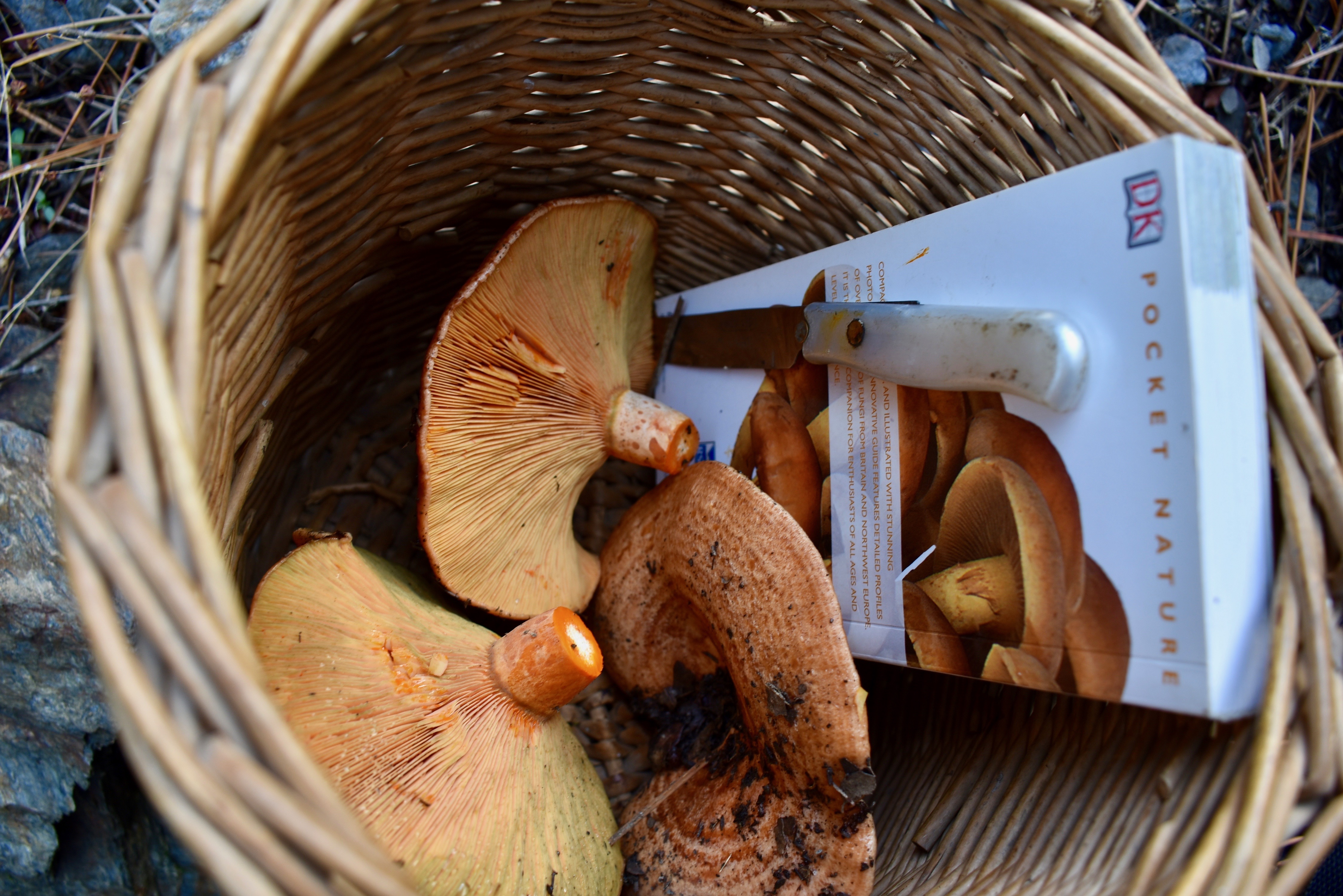 Take a guide book and double check with an app or a pro local with experience in mushrooms and discover the delicious options. The gorgeous orange ones I photographed are called Lactarius deliciosus or Saffron MilkCap and they are truly divine cooked with garlic.