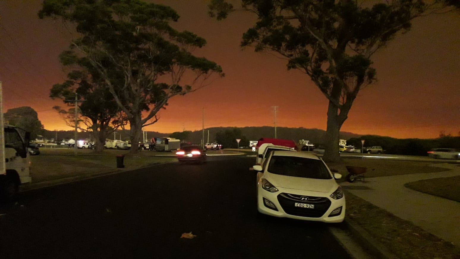 The next few hours were exhausting. No-one had slept more than a few hours as fires roared in from the North and the West, creating their own weather patterns of volatile cloud that shattered the air with loud explosions. The town’s power was cut, mobile phone and internet coverage suspended by the emergency authorities, shops and petrol stations were closed due to fuel pumps, automatic doors and tills no longer operating. We bunkered down in preparation for the worst. It didn’t come that day, even when the sky flared crimson then blacked out at 3pm.